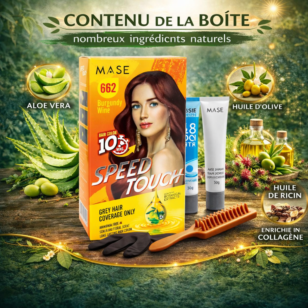 SPEED TOUCH contient de nombreux ingrédients naturels et est formulé pour nourrir les cheveux et le cuir chevelu afin d’éviter les dommages aux cheveux pendant le processus de coloration. Les extraits de collagène, d’huile de ricin, d’aloe vera et d’huile d’olive sont les principaux ingrédients pour hydrater, lisser, ajouter de la force et de la brillance. Pas de démangeaison, d’irritation, de picotement. Odeur plus agréable, moins forte, moins chimique.